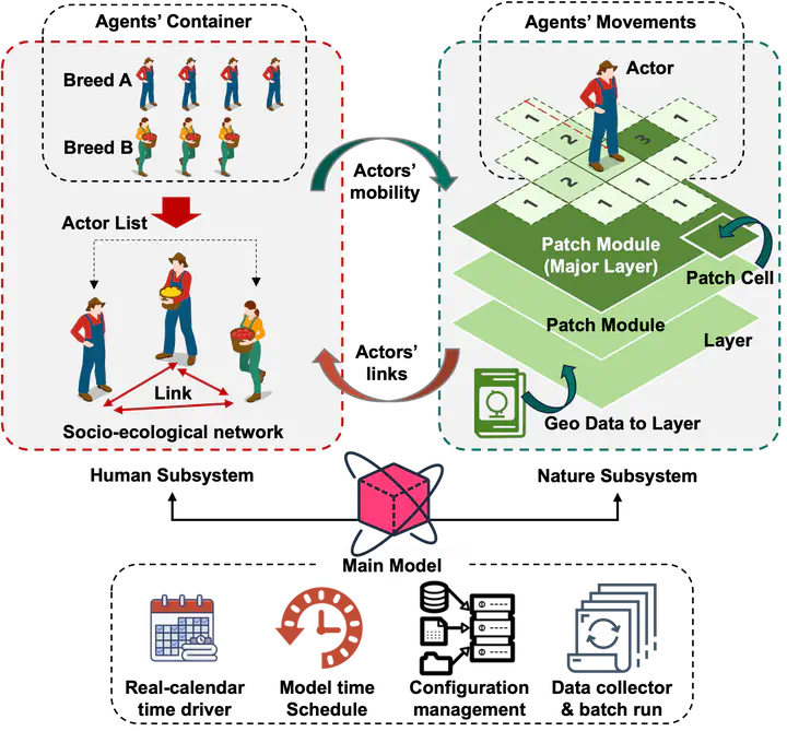 ABSESpy is a novel agent-based modeling (ABM) framework that facilitates socio-ecological systems (SES) research. It serves as an extension package of Mesa, the most popular ABM framework, and further enhances agents’ interactions with other components, especially grid-like spaces. With a configuration file for managing parameters and an improved data Input/Output system, ABSESpy’s modularity and low-coupling design enable elegant maintenance of large modeling projects. In addition, ABSESpy includes a schedule that aligns models’ tick with the calendar time. These innovations position ABSESpy as a valuable tool in fostering more ABMs for real-world SES issues. Its ultimate aim is to become the go-to choice for ABM when working with a human-involved changing world.